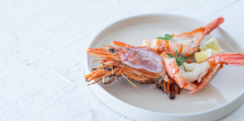 春の旬は鰈・鰤・鯖・海老の4種。おすすめは海老。殻付きで海老の旨味も香りも丸ごと味わえる焼き物を用意しました。